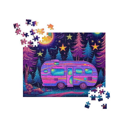 Neon Camper Scene Puzzle – 252-Piece Vibrant Camping Design