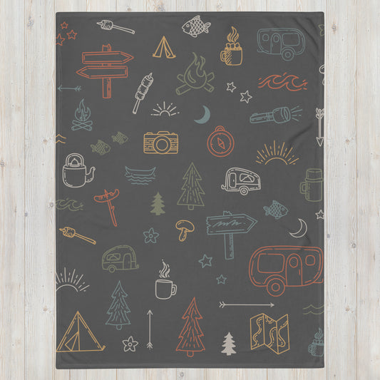 Camping Icons Plush Throw Blanket – Available in Two Sizes